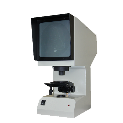 本投影儀光源發(fā)出的光線經(jīng)聚光鏡照射到被測物體,再經(jīng)物鏡將被照射物體放大的輪廓投射到投影屏上。根據(jù)需要,本儀器為單一投射照明,光源通過一系列光學元件投射在工作臺上,再通過一系列光學元件將被測試樣缺口輪廓清晰的投射到投影儀上。物體經(jīng)二次放大和二次反射成正像,在投影屏上所看到的圖形與實際試樣放置的方位一致。